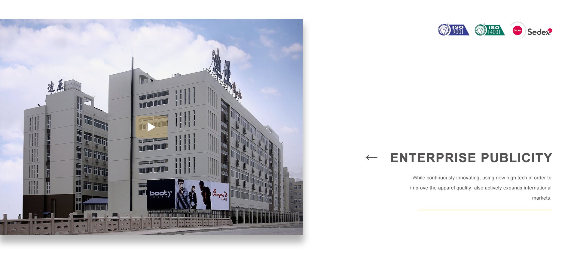 浙江迪亞服飾有限公司于1998年在世界時(shí)尚品牌之都——法國(guó)巴黎二區(qū)應(yīng)運(yùn)而生。同年,在浙江省甌海經(jīng)濟(jì)開(kāi)發(fā)區(qū)東方南路28號(hào)設(shè)立服裝制造工廠。公司集服裝設(shè)計(jì)、生產(chǎn)、營(yíng)銷(xiāo)、品牌于一體,在不斷創(chuàng)新、采用高新技術(shù)提高服飾質(zhì)量的同時(shí),積極拓展國(guó)際市場(chǎng),海外營(yíng)銷(xiāo)部長(zhǎng)期與LV集團(tuán)旗下的MAJE、SOEUR、BALIBARIS等國(guó)際著名品牌保持非常緊密的合作關(guān)系。品牌建設(shè)是公司堅(jiān)持不懈的追求,我們每年都會(huì)積極參加國(guó)內(nèi)外舉辦的各大服裝展銷(xiāo)會(huì)。憑借著良好的質(zhì)量與信譽(yù),市場(chǎng)占有率在逐漸擴(kuò)大,產(chǎn)品遠(yuǎn)銷(xiāo)歐洲、美洲、亞洲等國(guó)。公司以生產(chǎn)棉衣、羽絨服、派克、大衣、夾克、運(yùn)動(dòng)休閑服飾等為主,旗下主打品牌有 ORANGE D’OR 、CLAIRVAL、BOOTY JEANS 、S&V和SASAEC,各品牌服飾均以典雅的色彩、優(yōu)美的線(xiàn)條、卓越的魅力吸引著都市麗人,將時(shí)尚、經(jīng)典的潮流信息予以淋漓盡致的演繹。